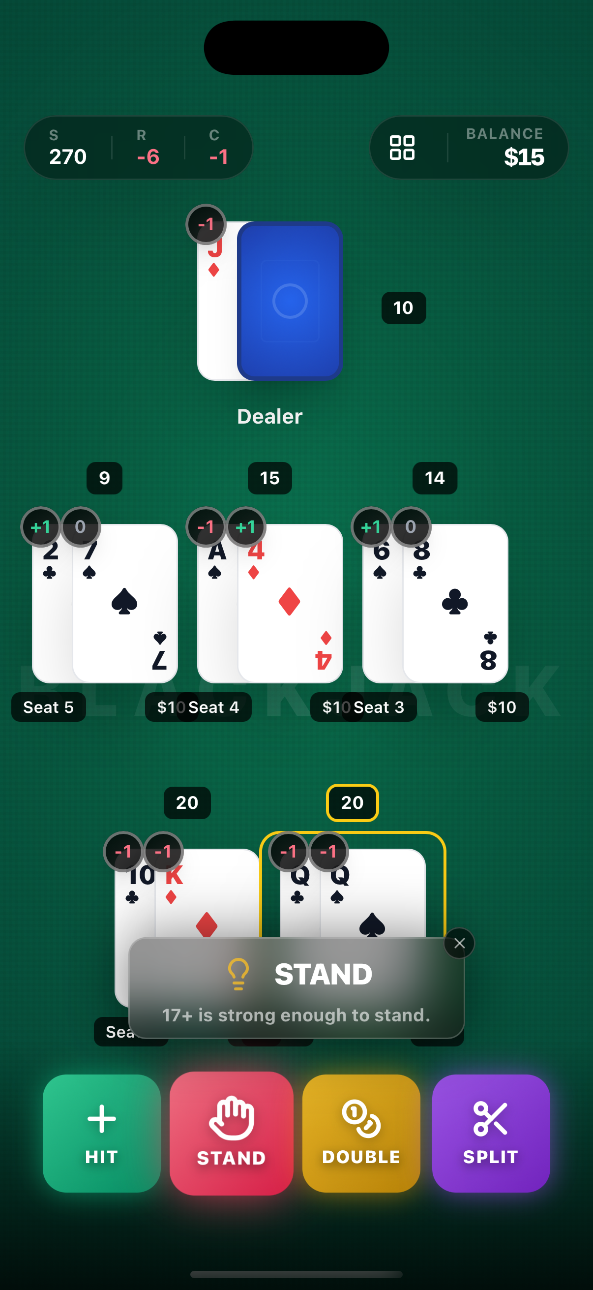 Stop guessing. Start counting. The ultimate training tool for serious blackjack players. Practice counting, analyze your mistakes, and perfect your game.